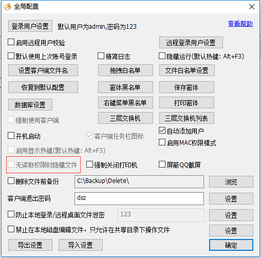 此外,我们还可以实现对于没有共享访问权限的文件夹设置隐藏的功能,也就是隐藏用户无权限访问的共享文件夹、隐藏用户没有访问权限的共享文件。具体设置如下: