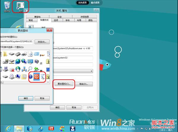 Win8关机方法五:本方法同方法四,借助“shutdown.exe -s -t 00”命令,在桌面创建关机快捷方式按钮。
