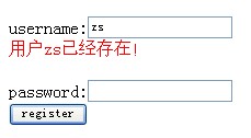 echo "<font color='red'>用户{$_POST["username"]}已经存在!</font>";