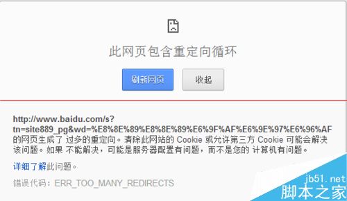 以上就是迅速小白菜最近收集整理的关于浏览器崩溃提示此网页包含重定向循环怎么办?的全部内容,更多相关浏览器崩溃提示此网页包含重定向循环怎么办内容请搜索靠谱客的其他文章。
