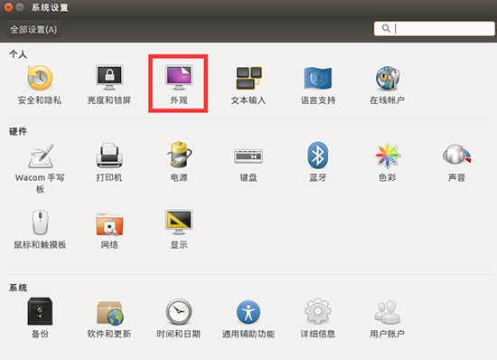 首先打开“系统设置”,单击“外观”,如下图所示。