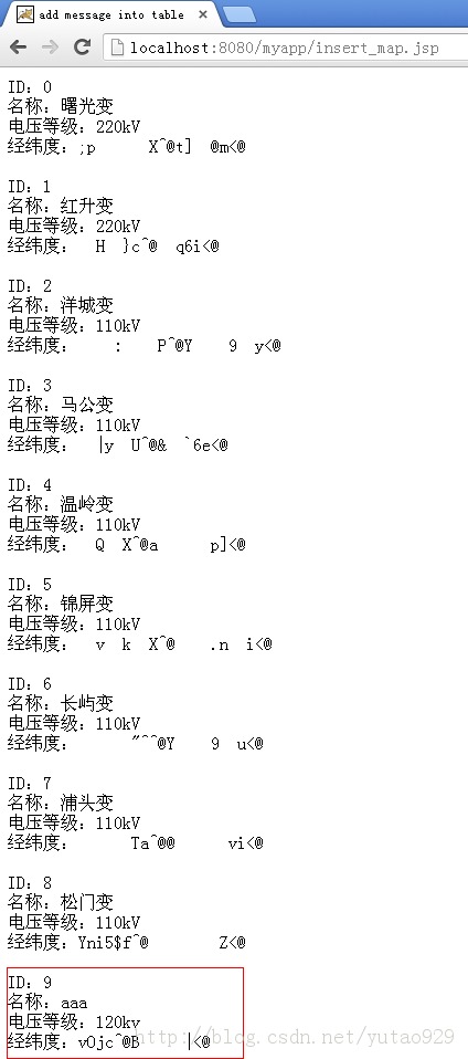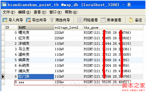String insert_sql = "INSERT INTO biandianzhan_point_tb VALUES('" + id + "','" + name + "','" + voltage_level + "',GeometryFromText('POINT (" + lon + " " + lat + ")') )";