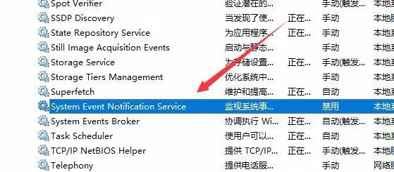 3、在打开的服务窗口右侧找到System Event Notification Service服务项,同时双击打开该服务的属性窗口