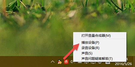 1、右击 Windows 10 任务栏右侧的「音量」图标,选择「播放设备」