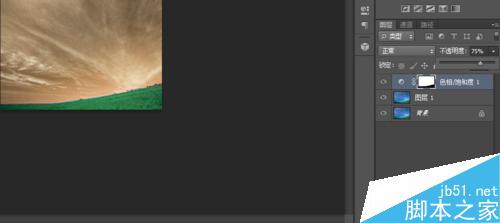 然后再使用黑色画笔擦除草地的色相的改变,之后设置不透明度为75%。可得下图。