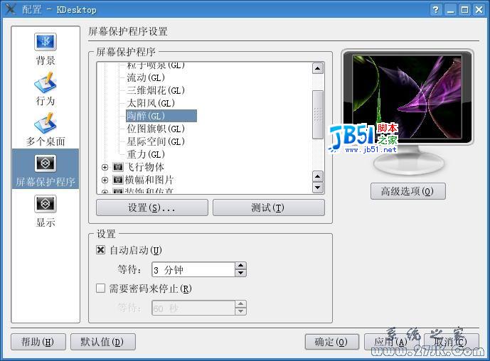 (2)经实践,最好用的一个就是运行屏幕保护程序,选中带GL的那几个,然后测试,如果不卡,那么就是已经启用了。最明显的就是:幻想。