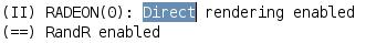 (5):cat /var/log/Xorg.0.log | grep " Direct Rendering enabled",如果出现下面的字样,引用:(II) RADEON(0): Direct Rendering enabled