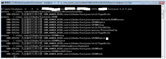 2、执行loadjava命令导入处理json所需jar文件,在此选择org.json而不选择fastjson或jackson的原因是该jar包没有外部依赖且满足功能的同时所需导入类文件较少。
