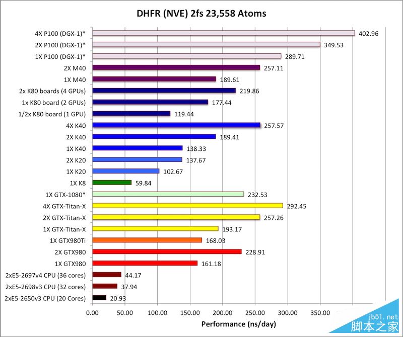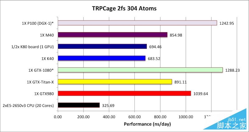 那么它到底性能如何呢?圣地亚哥超级计算中心的Scott Le GrandRoss Walker、亚马逊网络服务的Scott Le Grand联合编写了一个通用计算测试工具AMBER,可模拟生物分子周围的力场,并与NVIDIA合作对Tesla P100进行了一番测试,包括单路、双路、四路。