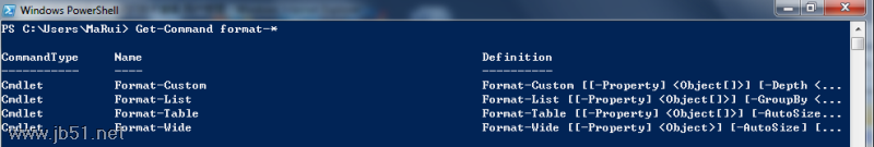 Get-Command Format-* <enter>