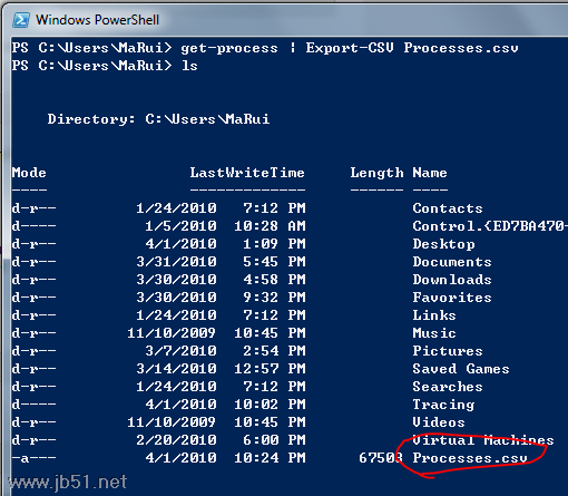 Get-Process | Export-CSV Processes.csv<enter>