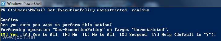 Y<enter> (Confirms “Yes” and sets the ExecutionPolicy to “Unrestricted”).