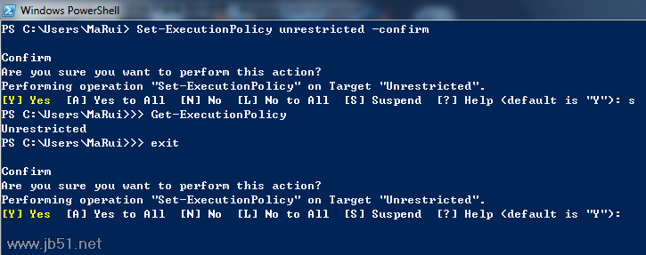 Set-ExecutionPolicy Unrestricted -confirm <enter>