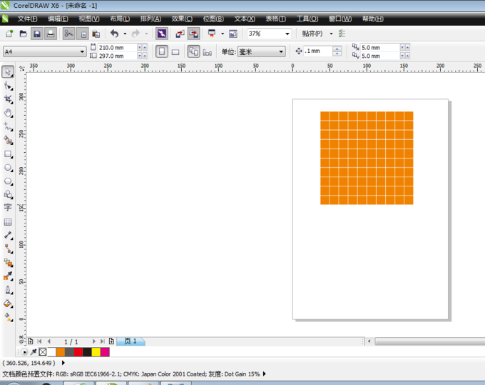 1、新建文件,单击图纸工具(coreldrawX6中是表格工具),绘制一个10*10的表格。