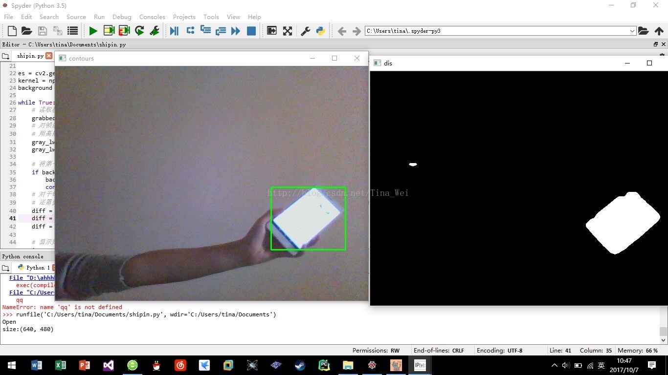 以上就是受伤小懒虫最近收集整理的关于python+opencv实现动态物体识别的全部内容,更多相关python+opencv实现动态物体识别内容请搜索靠谱客的其他文章。