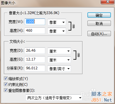 菜单→图像→图像大小,把宽度调整为1000,主要是为了提高像素大小。