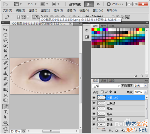 新建一层图层,命名为上眼线,