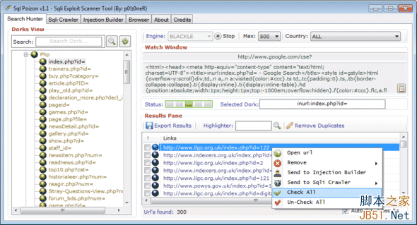 SQL Poizon的图形界面使用户无需深厚的专业知识便能够进行攻击,SQL Poizon扫描注入工具内置浏览器可帮助查看注入攻击带来的影响。SQL Poizon充分利用搜索引擎“dorks”扫描互联网中存在SQL注入漏洞的网站。
