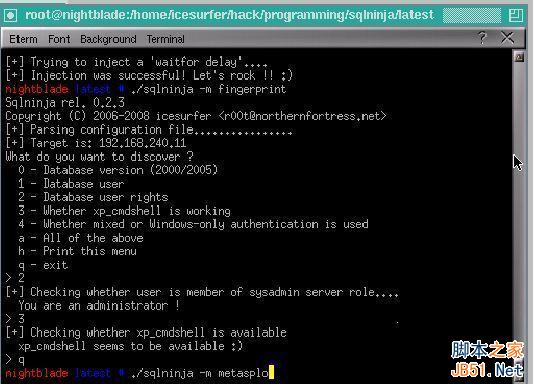 SQLninja软件用Perl编写,符合GPLv2标准。SQLninja的目的是利用Web应用程序中的SQL注入式漏洞,它依靠微软的SQL Server作为后端支持。其主要的目标是在存在着漏洞的数据库服务器上提供一个远程的外壳,甚至在一个有着严格的防范措施的环境中也能如此。在一个SQL注入式漏洞被发现以后,企业的管理员特别是渗透攻击的测试人员应当使用它,它能自动地接管数据库服务器。现在市场上有许多其它的SQL注入式漏洞工具,但SQLninja与其它工具不同,它无需抽取数据,而着重于在远程数据库服务器上获得一个交互式的外壳,并将它用作目标网络中的一个立足点。