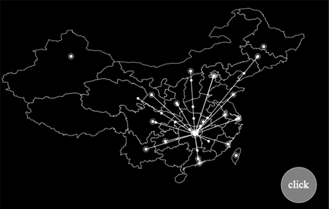 - 每次新产生一笔物流单,都有一个标记沿路线移向目标的动画效果。