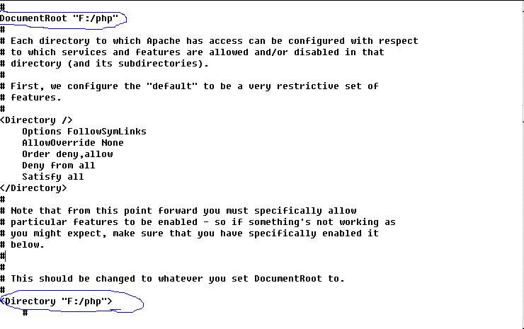 DocumentRoot "F:\php"