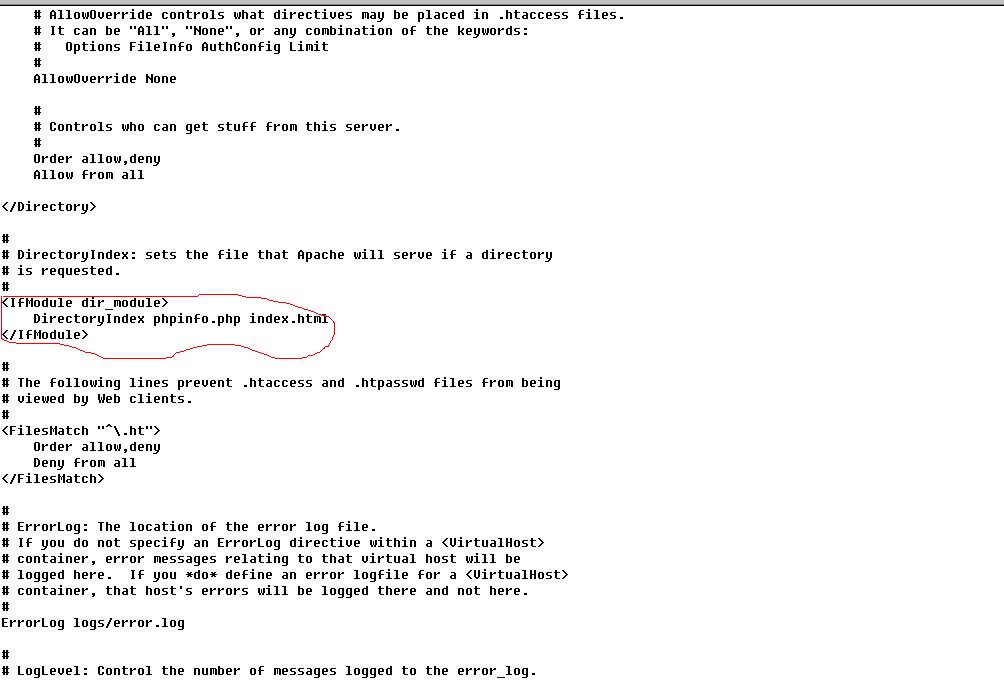 DirectoryIndex phpinfo.php index.html