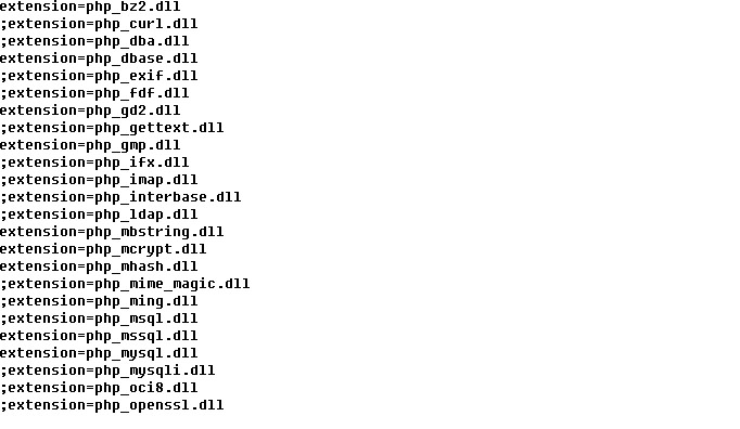 将php.ini文件中下面格式的行前的;去掉以加载相应的模块,注:加载模块不正确将会出错
