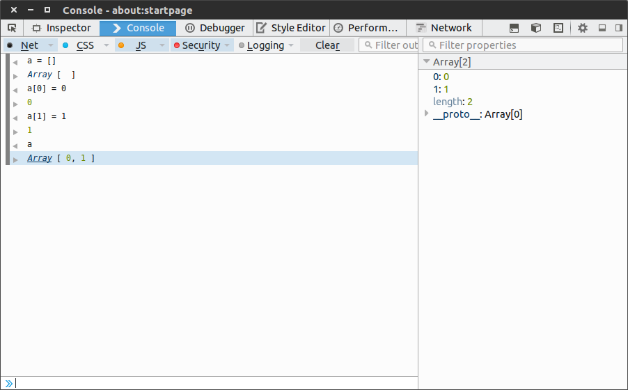 然后到重点了,关于往数组里添加元素这件事。首先,你要知道数组是一个对象,而对象是一个键值对的集合(类似于java里面的map,python里面的dict,c#里面的Dictionary),对象可以有属性,对象的函数叫方法,对象的属性或方法可以使用方括号或点号的方式访问,其中使用方括号引用要加引号,点号的使用只有在属性名称是一个合法的变量名称的时候才可以使用,也就是属性不包含任何空格连字符并且不以数字开头时才可以,看个例子: