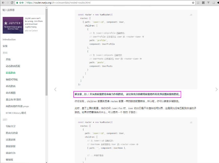 1. 看下官方文档对嵌套路由的说明: