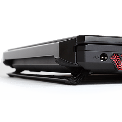这款性能强劲的游戏本,厚度为3.15cm,重量为2.7kg,为了满足核心玩家运行大型游戏的散热需求,机身转轴底部设计了一个脚架,能够轻易“抬”起机身获得更好的风道帮助散热。这款性能机器的键盘内置了定制按键,能够快速开关机身背光,调整风扇速度以及进行CPU超频。
