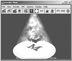 (1) 创建一个如图 7-32 所示的场景,在这个场景中主要包括一个平面物体、一个字母 M 和一盏聚光灯。在制作这个场景时,灯光照射的圆锥范围一定要把整个字母 M 包括在内。