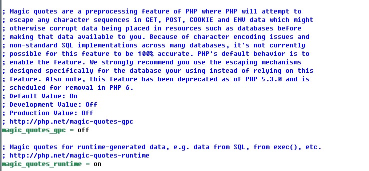 magic_quotes_gpc不可以在运行时进行设置[只能在重启服务器的时候读取该设置]