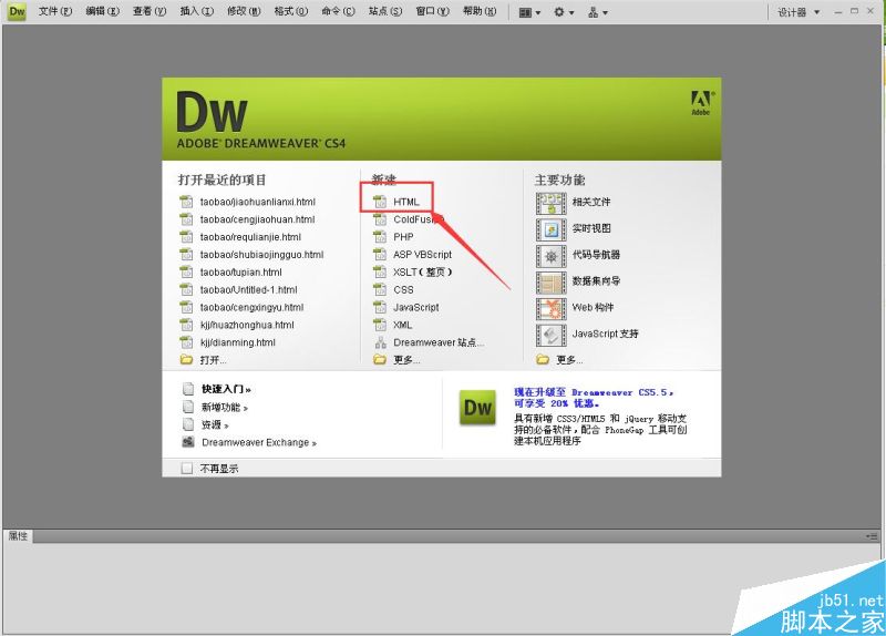 1、首先,我们打开DW,并创建文档;