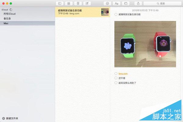 备忘录:和 iOS 9 的备忘录一样,苹果现在赋予其更多功能,升级后的备忘录可以插入图片、URL 和其它形式的内容,也可以从其它应用收集咨询。还可以创建清单,轻松一点即可创建待办事项。更重要的是,它还可以支持 iCloud,用户在其它设备上也能够看到在 Mac 上创建的备忘录。