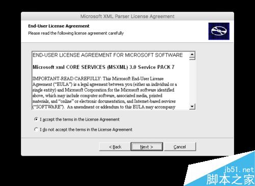 在接下来跳出的“Microsoft XML Parser Setup”安装界面上,点击“ Next ”填写你的个人信息。填写完成后点击“ Next ”,选中“ I accept the teams in the License Agerrment ”。依次点击“ Next ”、“ Install ”和“ Finish ”。