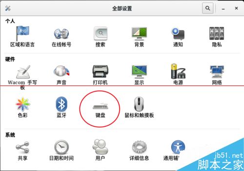 3、找到“键盘”按钮并打开。