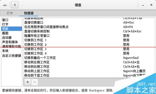 6、你会看到“禁用”两个字,点击它,然后按下你喜欢的快捷键。一般按惯例是“Super + D”,因为D表示Desktop。设置好了,就能按下它试试。是不是很方便呢?像Windows一样,第一次按下,隐藏所有窗口并显示桌面;第二次按下则恢复到之前的状态。
