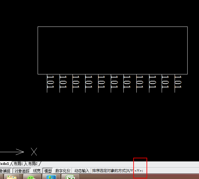 2、首先,将文字阵列。选中文字,点击阵列工具。确定整列方向和数量。这里我需要1行多列,所以x=1,y=11。选择整列的距离。我需要阵列的距离就是两个管脚之间的距离。全部设置完成,点击确定,就可以得到阵列效果。