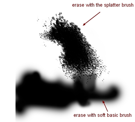 创建新图层(仍在模特层)。选择前景色为黑色,使用飞溅笔刷在模特和圆圈区刷几下(我用的画笔笔号353):
