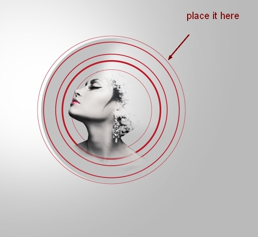 栅格化所有的圆形设计素材。我从这些素材中选择了三个圆(随意选择你喜欢的),并把圆放在模特的周围。记得要把这些圆图层放在模特层上方。