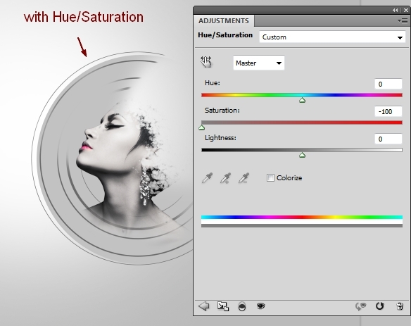 我使用一个色相/ 饱和度调整图层来调整这个圆圈图层,图像>调整>色相/饱和度: