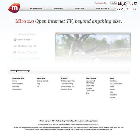 Miro网站通“Looking for something?”文字栏来分开页脚网站地图