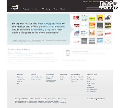 你也可以象Six Apart 一样利用网站地图来连接你的网络站点。在页脚,博客部分,有一些链接到姐妹站点的链接:Typepad,Movable,and Vox.