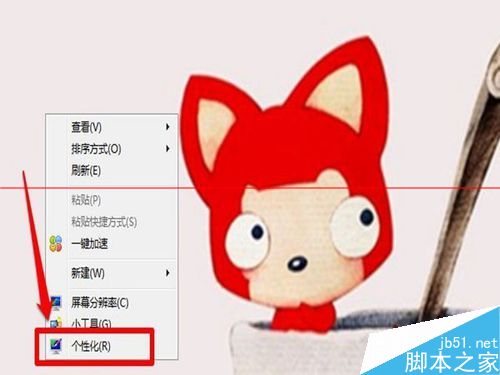 1、小伙伴认真看,我们首先在桌面上,单击鼠标右键,桌面就会出来一个对话框,对话框里面有很多选项,比如查看刷新什么的,这些我们都不管,我们单击左键,点击最下面的“个性化”就可以了。
