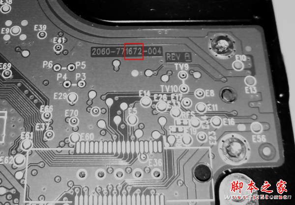 由于维修我们是基于电路板号和家族来进行的,所以需要提前确定故障硬盘的电路板号。电路板号在硬盘机身可见(图2),以笔者硬盘为例,1672就是它的板号。