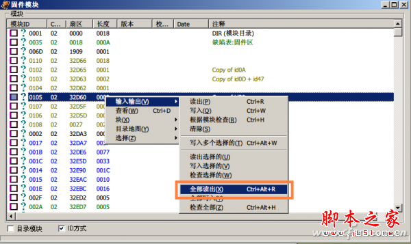 进行通刷模块时需先写0001号模块(图10 图注:有些电路板型号在写模块前,还需要加载引导模块,比如1640),接下来在写入剩余模块(图11),写入完成点电源复位,完成复位。