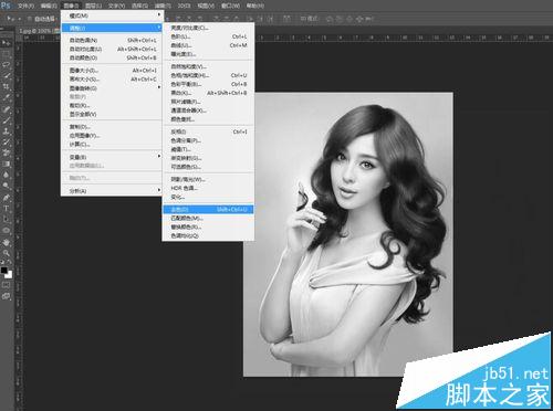 1、与方法1的第一步一样,ps打开图片,对图片进行去色,点击图像-调整-去色