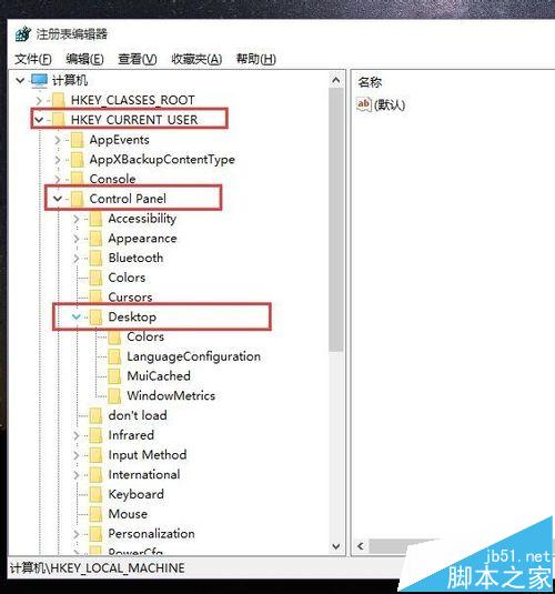 2、打开注册表编辑器页面之后,点击注册表编辑器页面左侧,依次双击打开HKEY_CURRENT_USER\Control Panel\Desktop文件项目。