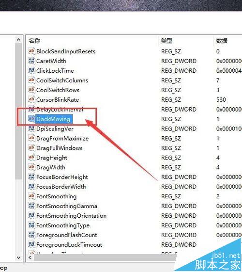 3、在Desktop文件右侧窗口中,点击找到DockMoving设置项目,然后双击即可打开该设置项目属性界面。