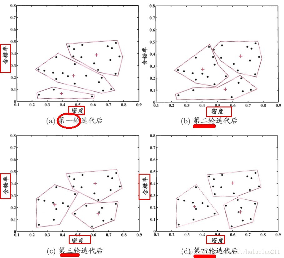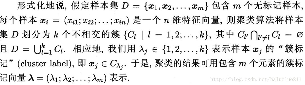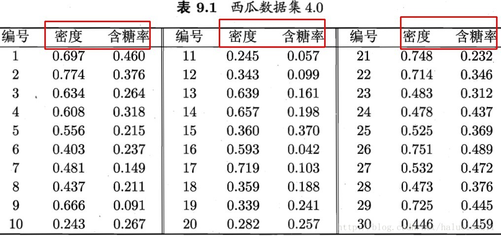 下面主要说明K均值聚类算法(示例来源于,周志华西瓜书)